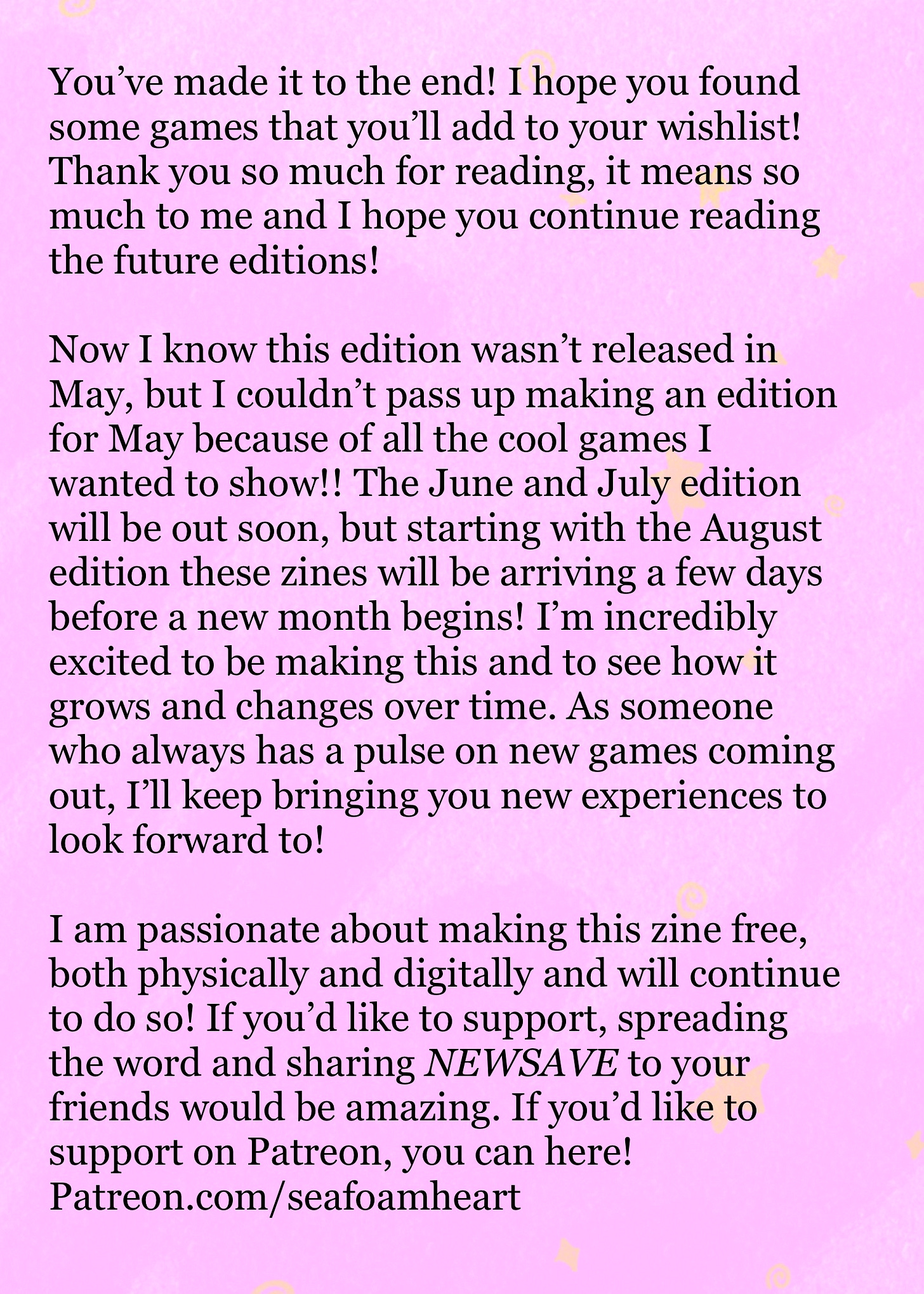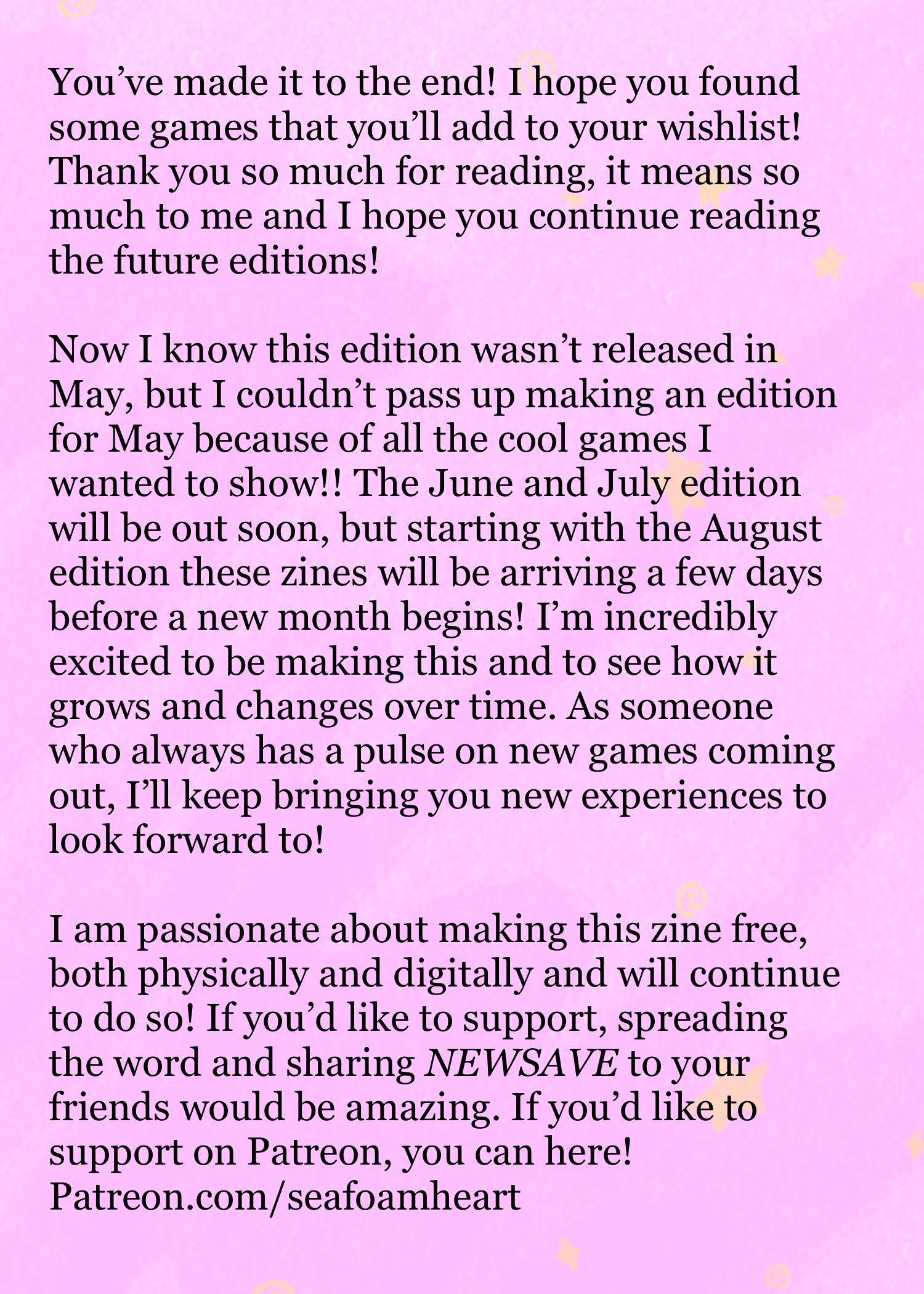 Now, I know we are in June and this is the May edition, but you can expect these zines to start coming out a few days before a new month begins. The June and July editions are both coming along great, so the August edition will be the first to arrive before the month begins! There are no physicals yet, but there will be soon, so stay tuned here for more info on that!